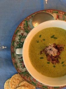 - Serve the soup in individual bowls garnished with watercress leaves and crispy bacon.