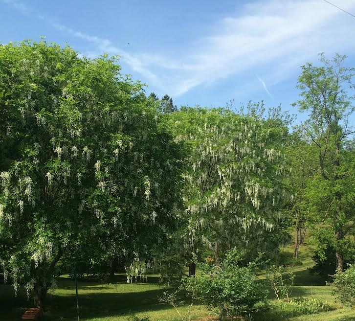 Looking at them now, on a winter day, in their gray dormancy against a snowy backdrop, they appear almost as if nothing’s amiss. If I try, I can conjure up a June day when the leaves are green, the flowers buzz with life, and the fallen petals carpet the ground like snow. I guess that will have to be enough.